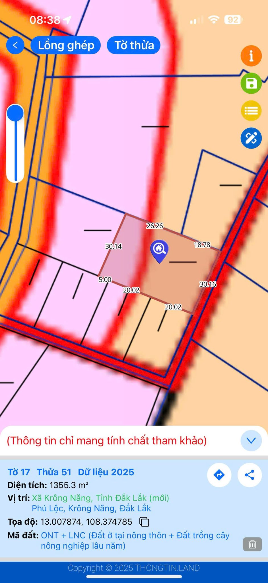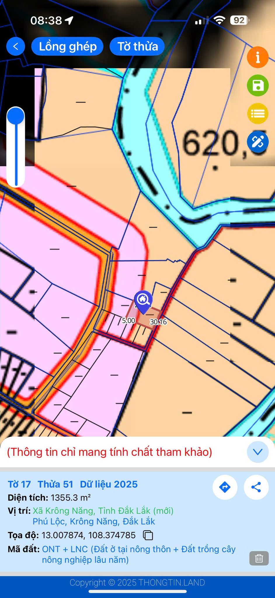 Với chiều ngang 30m và chiều dài 45m, lô đất này có diện tích thổ cư 100m² và tổng diện tích lên đến 1355 m². Vị trí cực kỳ đắc địa, nằm gần Sông Krong Năng, mang đến không khí mát mẻ, trong lành quanh năm. Đây không chỉ là nơi an cư lý tưởng mà còn là cơ hội đầu tư sinh lời hấp dẫn.