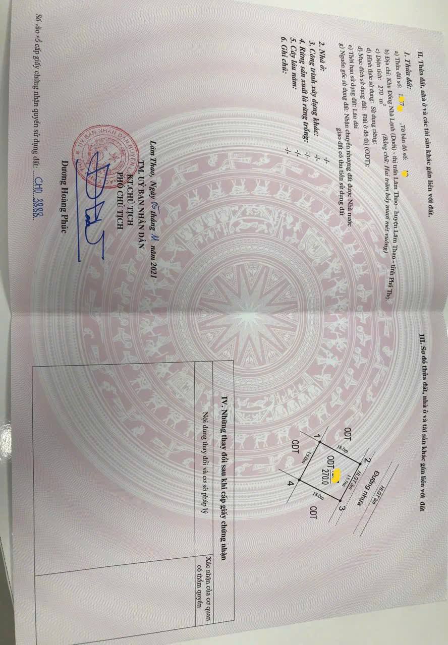 Cực sốc! Gia đình cần nhượng lại ô đất biệt thự đẹp nhất khu Đồng Nhà Lạnh, Lâm Thao với diện tích 270m2 (15x18), full thổ cư, tọa lạc ngay tại trung tâm thị trấn.