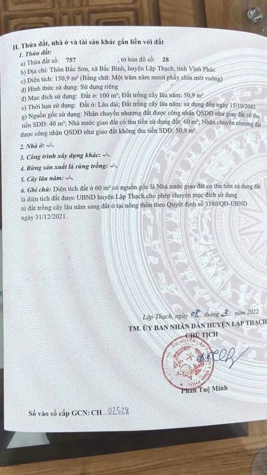 Cơ hội sở hữu mảnh đất 150m² đầy tiềm năng trên trục chính Quốc lộ 2C, xã Bắc Bình, huyện Lập Thạch, tỉnh Vĩnh Phúc.