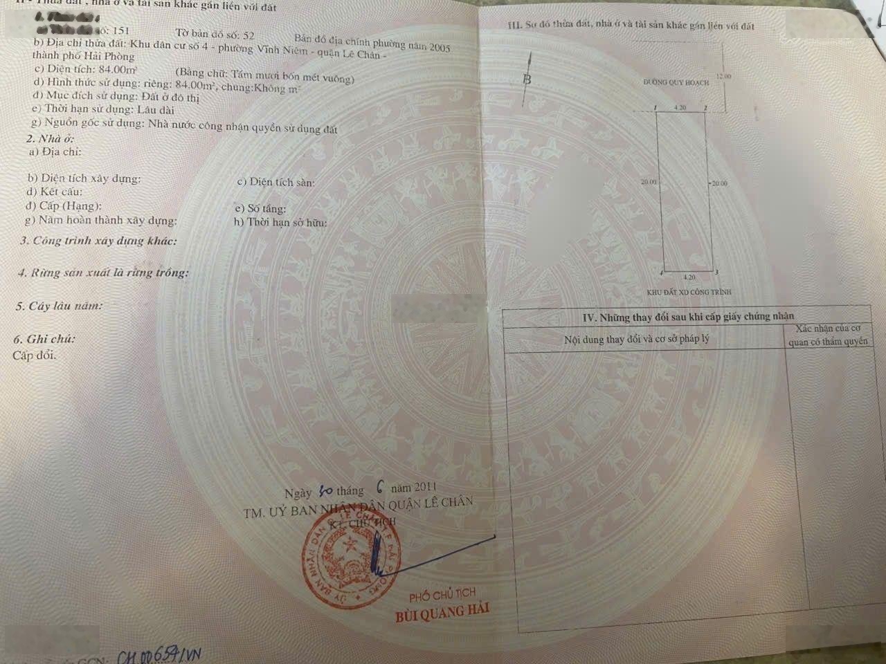 Đất thổ cư nằm tại 39 trực cát 2, Phố Trực Cát, Phường Lê Chân, Hải Phòng (Quận Lê Chân, Hải Phòng cũ), với diện tích 84 m2(thêm 20m lưu không) và giá bán 76 triệu / m2. Đất có mặt tiền 4.2m và đường vào rộng 12m, thuận tiện cho việc di chuyển và xây dựng. Pháp lý đầy đủ. Điểm đặc biệt: Đất có phong thủy tốt, thích hợp cho việc xây dựng nhà ở hay đầu tư. Các tiện ích như điều hòa, tủ lạnh có thể được trang bị, giúp cho không gian sống thêm phần tiện nghi. Mặt tiền rộng, thuận lợi cho các hoạt động kinh doanh. Địa điểm xung quanh: - Siêu thị thịt bò - Beef Mart - Mầm non Hướng Dương cơ sở 2 - Bệnh viện Đa khoa Quốc tế Vinmec Hải Phòng - Bệnh viện Mắt Quốc tế Việt - Nga - Hải Phòng Liên hệ ngay để biết thêm thông tin chi tiết và đặt lịch xem đất qua số điện thoại 0936259616, liên hệ Bùi Đức An.