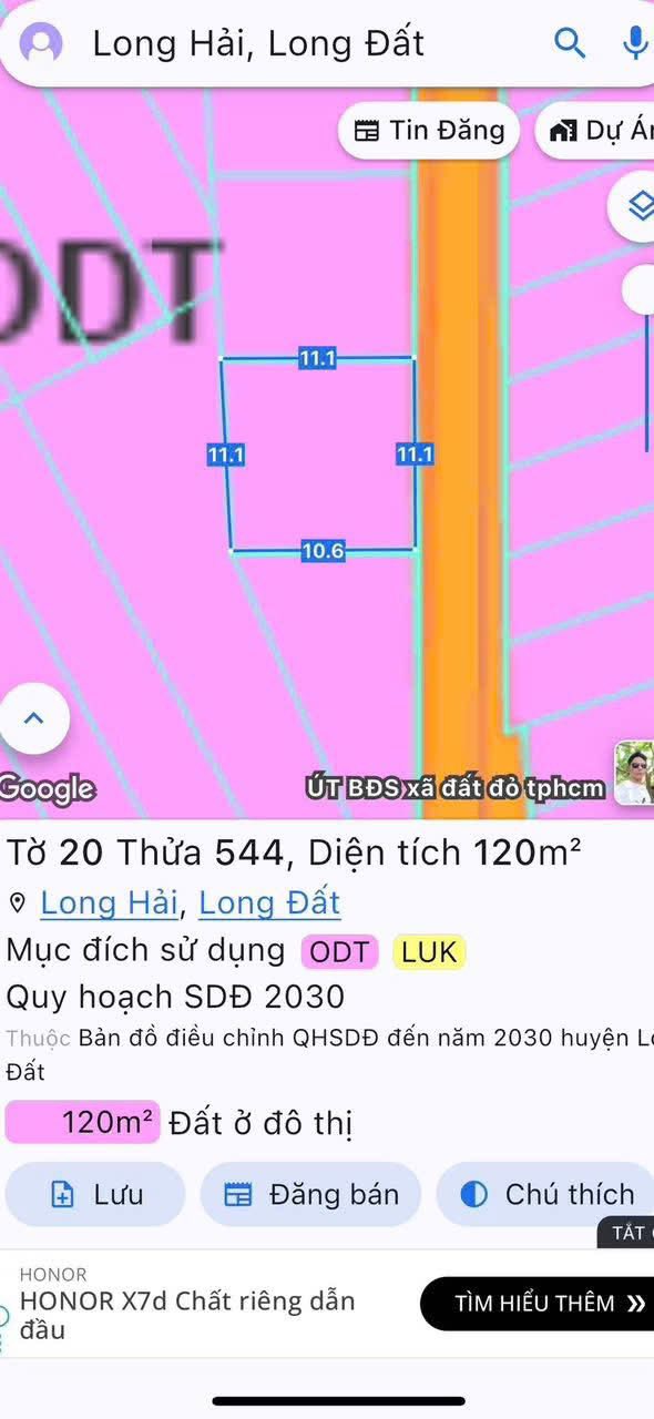 Cần bán lô đất vuông vắn, vuông vắn tại Thị trấn Long Hải, huyện Long Điền, tỉnh Bà Rịa - Vũng Tàu