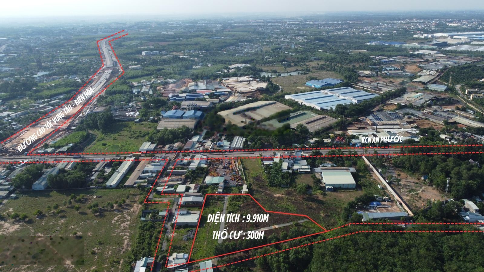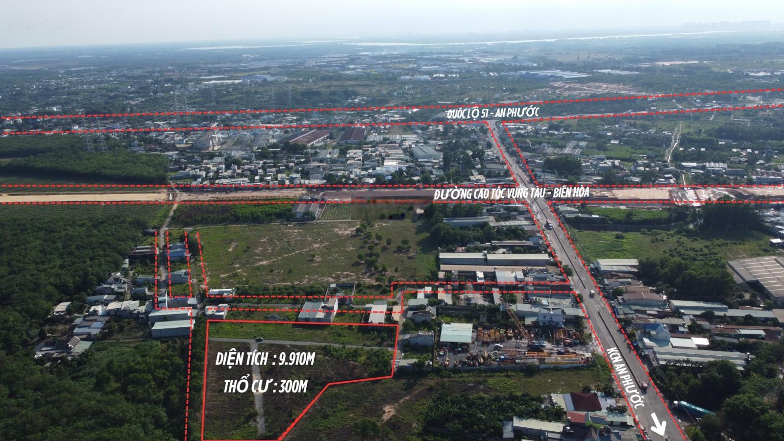 Miếng đất 9.910 m² nằm ở giao điểm vàng của Đồng Nai không chỉ giáp Quốc lộ 51, cao tốc Biên HòaVũng Tàu và KCN An Phước, mà còn kề cận Gem Sky World và Sân bay quốc tế Long Thành.