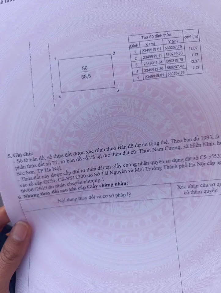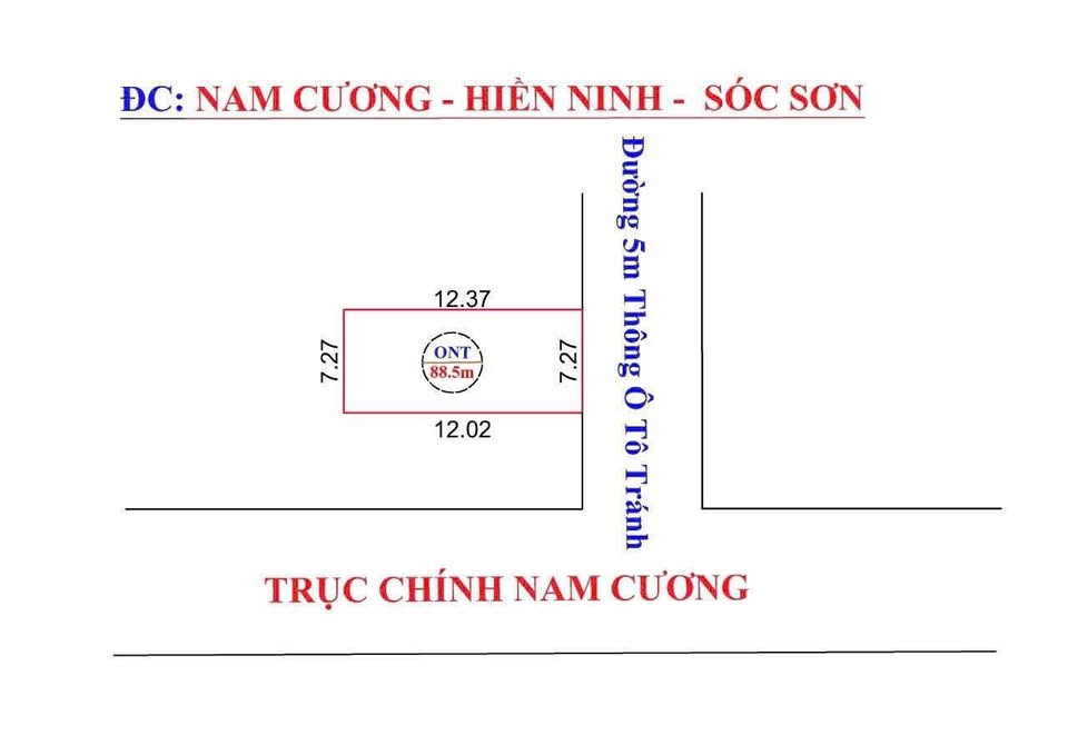 Cơ hội sở hữu ngay lô đất vuông vắn 88.5m2 tại Nam Cương, Nội Bài, Mê Linh, Hà Nội. Lô đất nằm trên mặt đường rộng 4.5m, ô tô có thể đỗ tại chỗ, cực kỳ thuận tiện cho việc di chuyển và sinh hoạt.