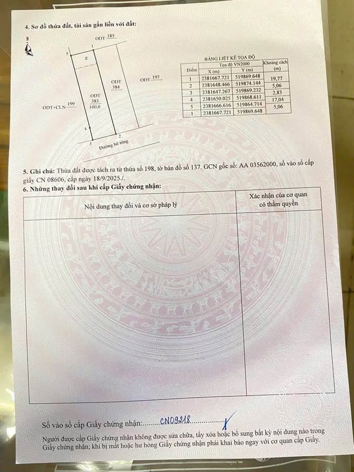 Với diện tích 100m² đất thổ cư lâu dài, đây là nền tảng vững chắc cho tổ ấm tương lai hoặc một khoản đầu tư sinh lời đầy hứa hẹn.