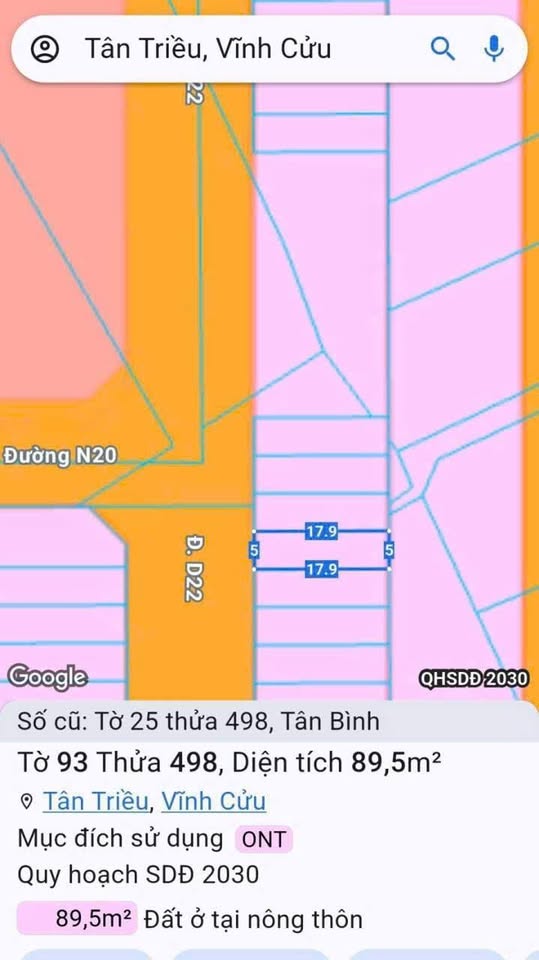 Diện tích đất: 87.5m² với kích thước ngang 5m và chiều dài 17.9m.