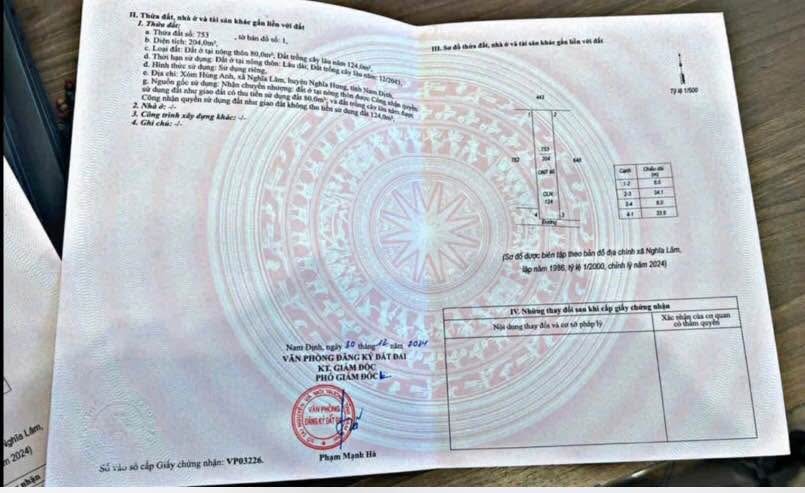 Vị trí đắc địa tại xóm Hùng Anh, Nghĩa Lâm, Nghĩa Hưng, Nam Định. Diện tích rộng rãi 204m2, mặt tiền 6m, vuông vắn như hoa hậu.
