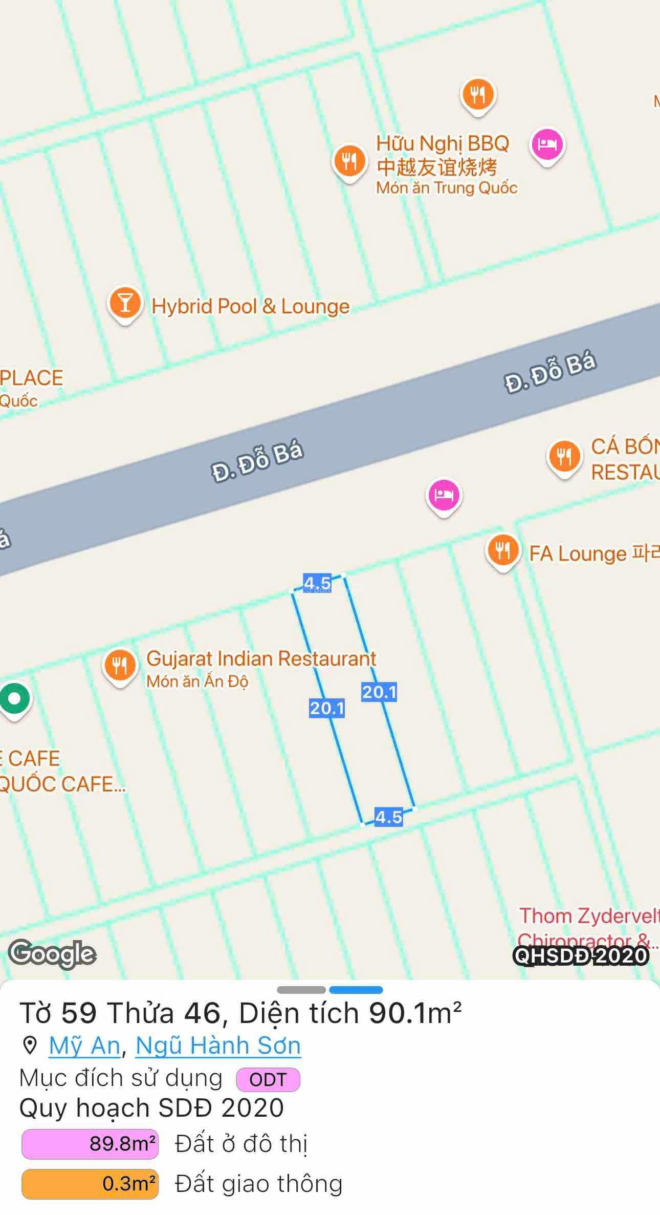 Cần bán cặp ĐỖ BÁ- P.Mỹ An- Ngũ Hành Sơn- Đà Nẵng - Vị trí sát biển 200m , nằm giữa đoạn Trần Bạch Đằng và Lê Quang Đạo - DT : 180m2 (Ngang 9m x 20m) - Đường 10m5 vỉa hè 5m - Hướng Bắc, vỉa hè 5m. - Ko bán lẻ - Siêu thị đang thuê. -Giá : 56ty đến công chứng -LH : 0942992361 Thùy Trang (zalo/call) đi xem và làm việc chính chủ