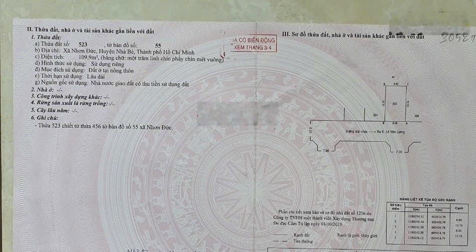 Lô đất có diện tích 110m2 8x13,8m, mặt tiền 8m, đường vào rộng rãi, rất phù hợp cho việc xây dựng nhà ở hoặc đầu tư kinh doanh.