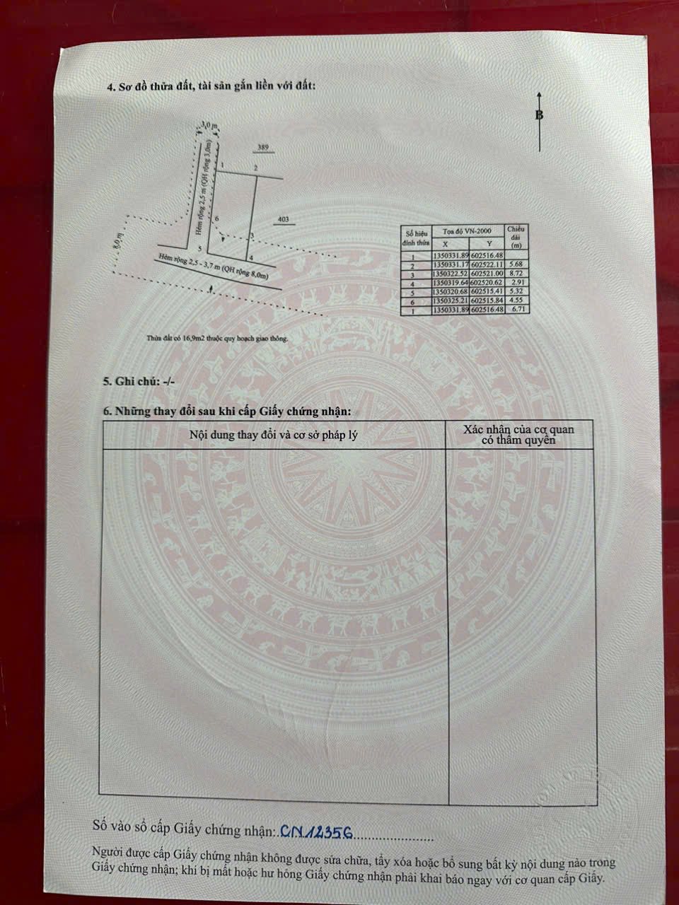 Diện tích đất là 63m2, quy hoạch giao thông mở đường rộng 5m (quy hoạch giao thông 17m2), diện tích đất ở còn lại là 46m2. Lô đất tiếp giáp 2 mặt hẻm, chiều rộng hẻm dao động từ 2.5m đến 3.7m, tạo không gian thoáng đãng và thuận tiện di chuyển.