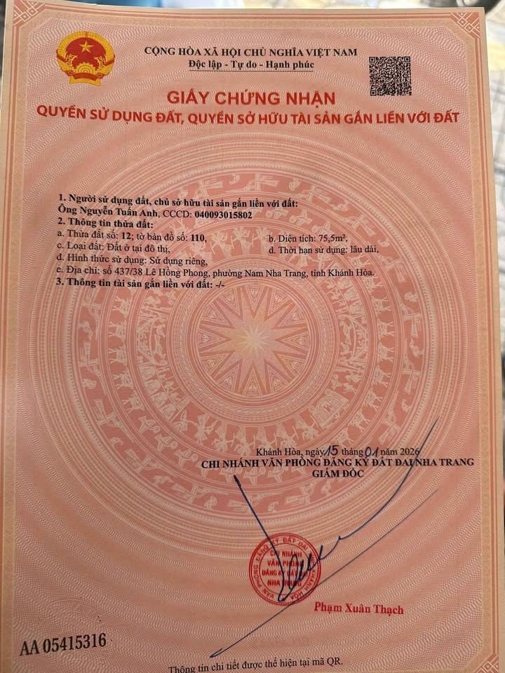 Bán lô đất siêu đẹp mặt tiền đường Thái Thông, xã Vĩnh Thái, Nha Trang, giá 37 triệu/m2