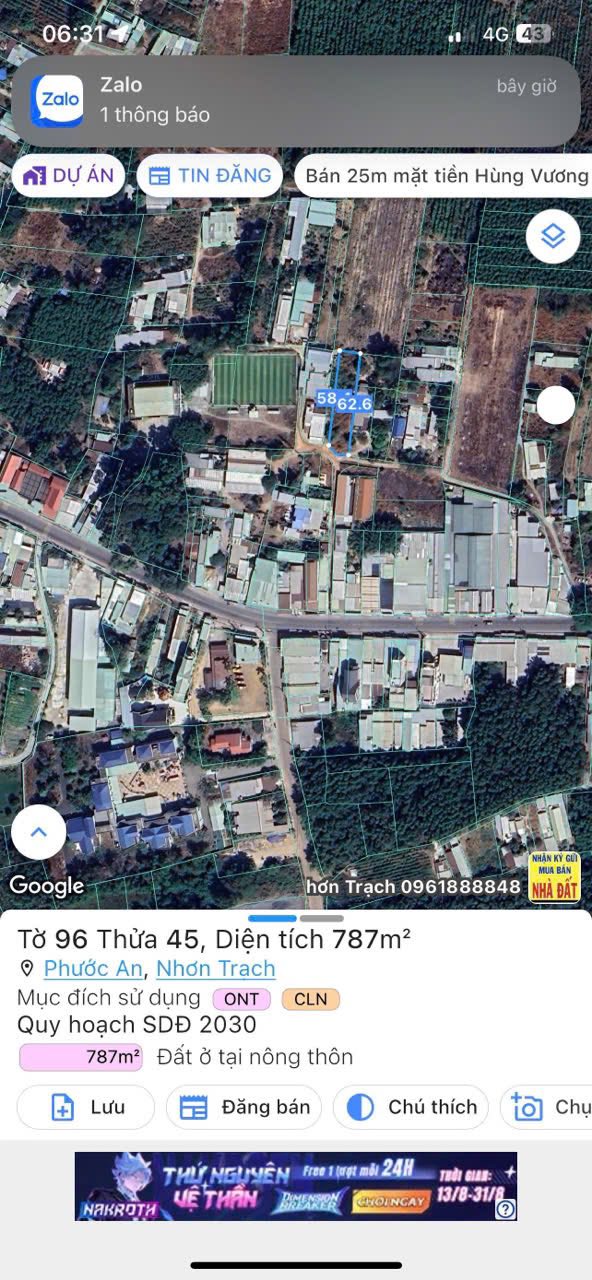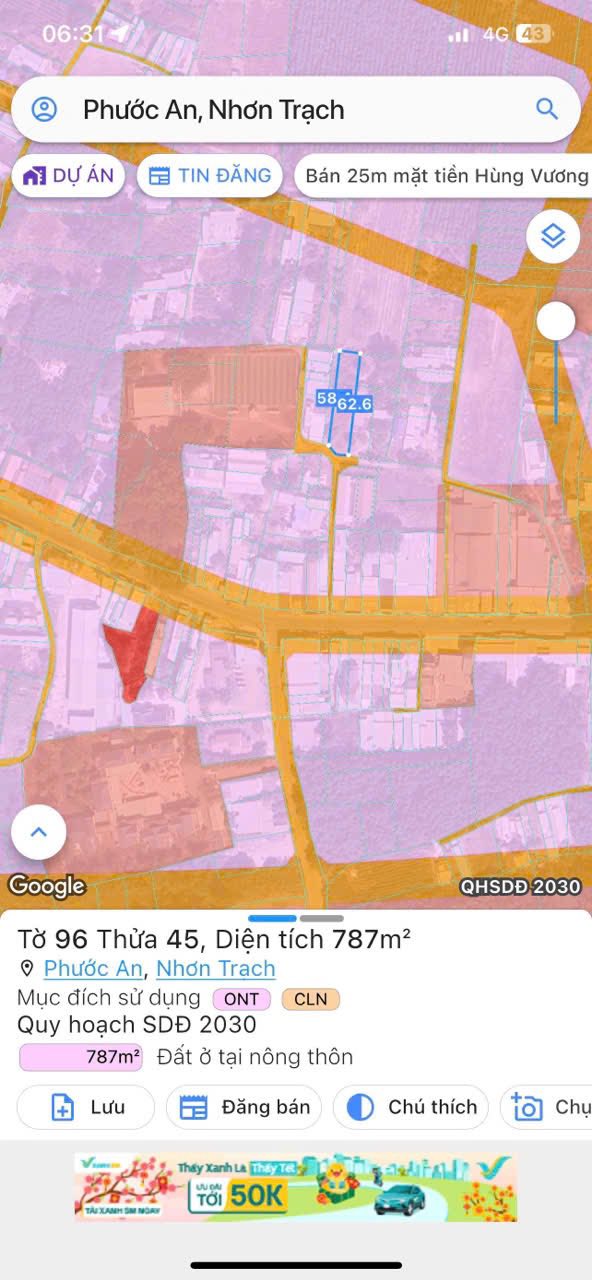 Bán lô đất mặt tiền nhựa Huỳnh Thúc Kháng, xã Phước An,gần ngay khu công nghiệp Nhơn Trạch, cảng Phước An