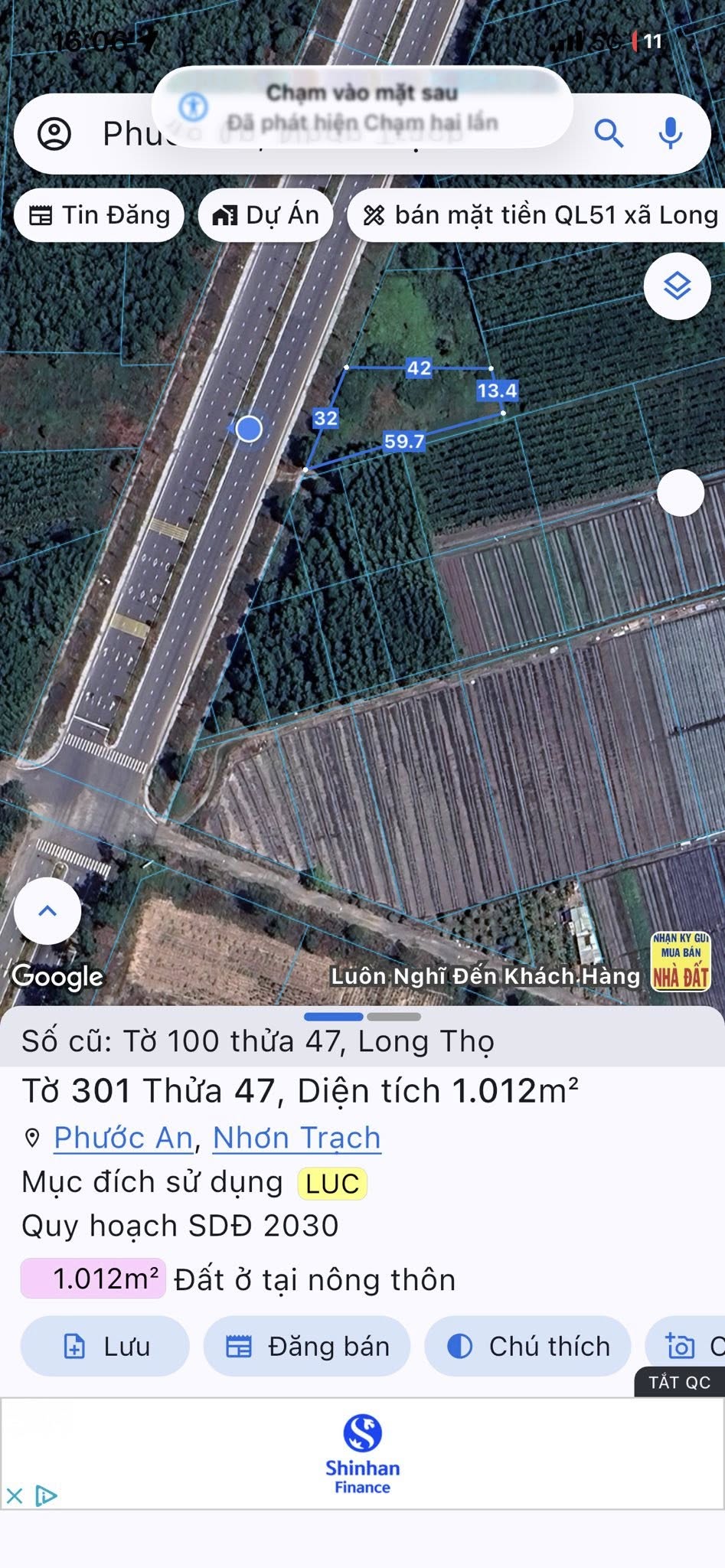 Đất ruộng 1819m2 Phú Hữu, sổ hồng riêng, giá siêu hời