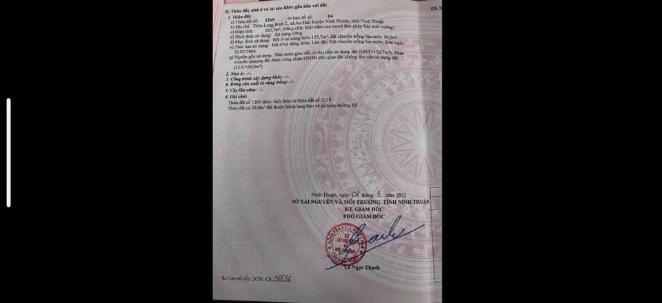 Chủ nhà chuyển công tác cần bán gấp lô đất thổ cư tại thôn Long Bình, Ninh Thuận.