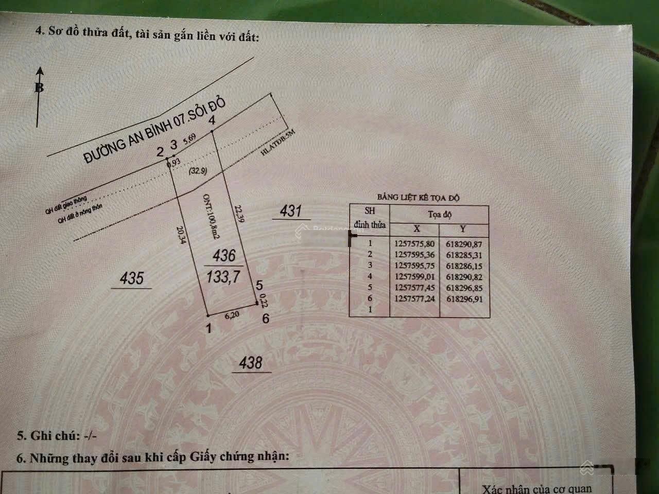 Đất đẹp ở đường 741, Xã An Bình, Phú Giáo, Bình Dương, cực kỳ lý tưởng cho ai đang tìm kiếm một chỗ để xây dựng tổ ấm hay đầu tư sinh lời. Khu đất có diện tích rộng 133m2, mặt tiền 5m, ngõ vào rộng 12m, rất thuận tiện cho việc đi lại và vận chuyển.