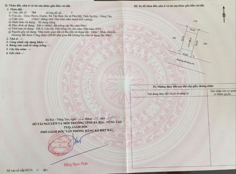 BÁN ĐẤT PHƯỚC THÀNH TÂN HOÀ, TP. CẢNG PHÚ MỸ, BÀ RỊA VŨNG TÀU.