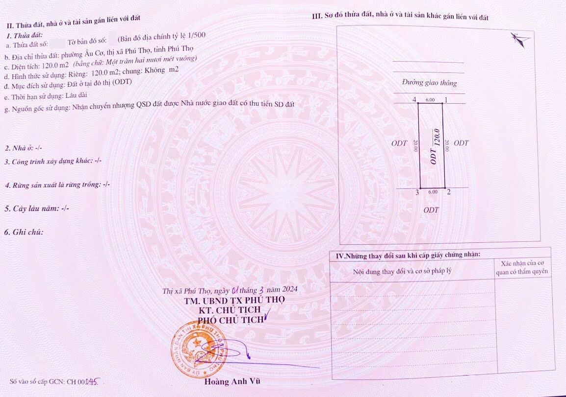 Đất nền dự án Âu Cơ Park City tọa lạc tại Đường Trường Chinh, Phường Âu Cơ, Phú Thọ, mang đến cơ hội đầu tư hấp dẫn cho những ai đang tìm kiếm một nơi an cư lý tưởng. Với diện tích 120m2 và giá bán 3,2tỷ, đây là một lựa chọn hoàn hảo cho những gia đình trẻ và các nhà đầu tư.