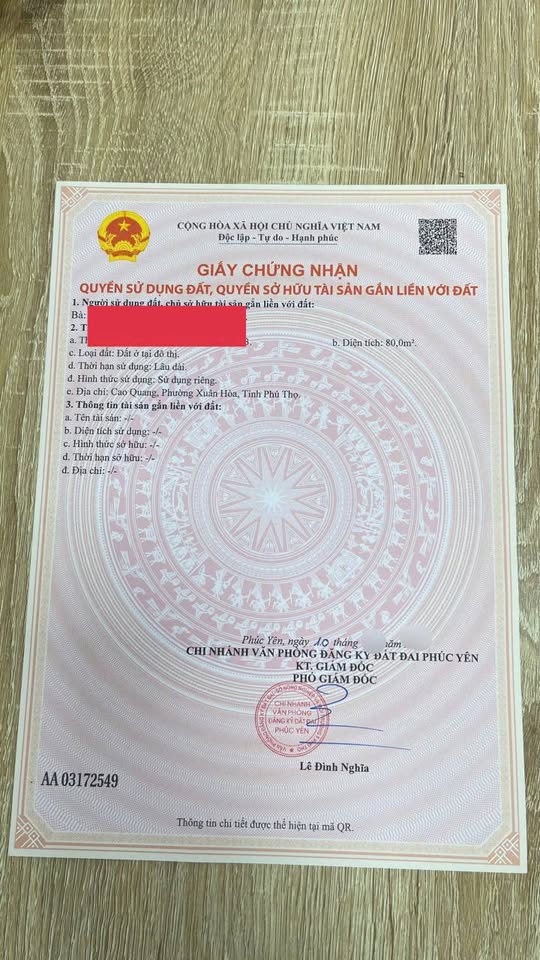 Bán đất full thổ cư 64.9m2 gần công an phường Xuân Hòa, Vĩnh Phúc - Giá 1.2 tỷ
