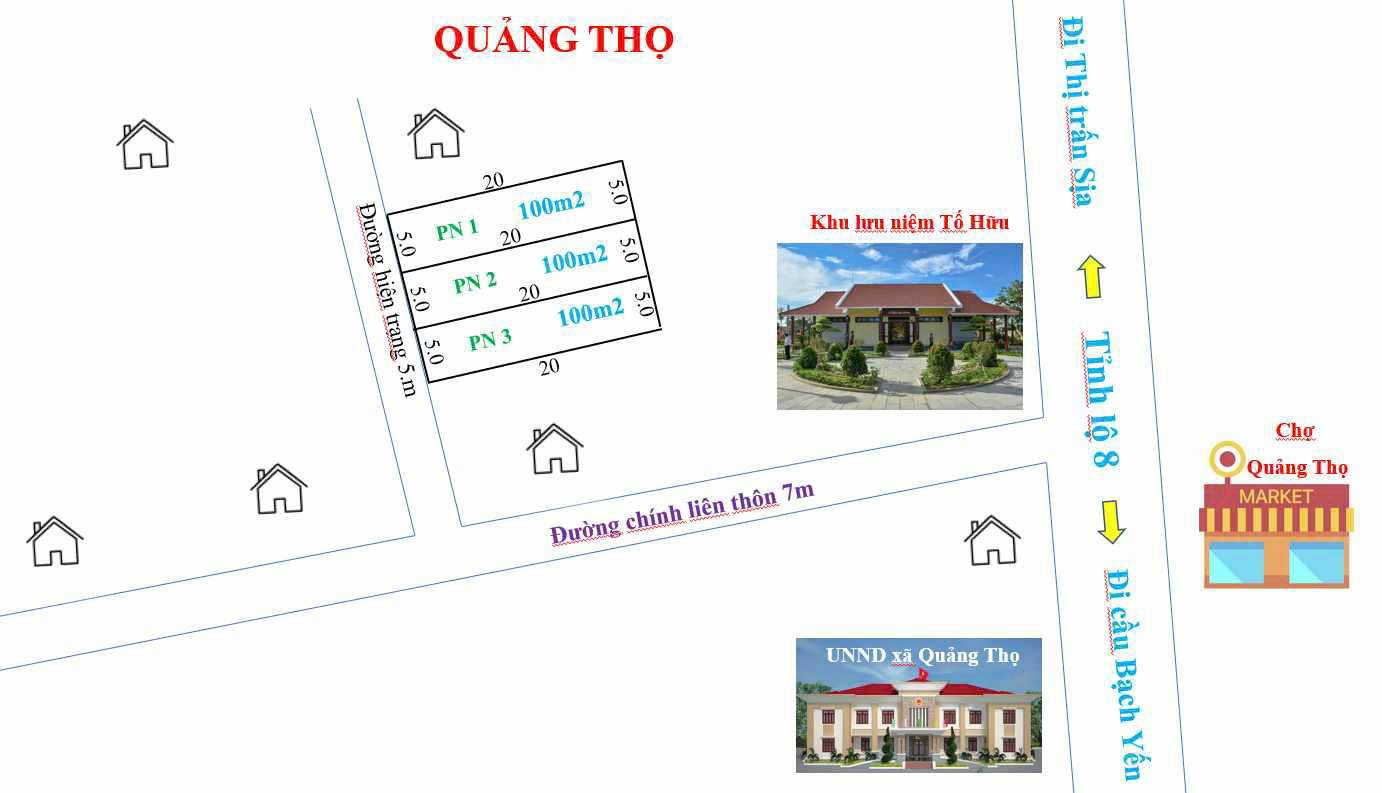 Lô đất vuông vắn như bánh chưng ngày Tết, diện tích 100m2, nằm ngay gần di tích Tố Hữu và chợ Quảng Thọ, huyện Quảng Điền, tỉnh Thừa Thiên Huế. Đường rộng 5m, ô tô vào tận nơi, không lo tắc đường hay kẹt xe. Pháp lý rõ ràng, sang tên công chứng ngay trong một nốt nhạc. Giá chỉ 435 triệu, quá hời cho một lô đất tiềm năng như vậy. Liên hệ ngay 0777959472 để xem đất và chốt kèo kẻo lỡ!