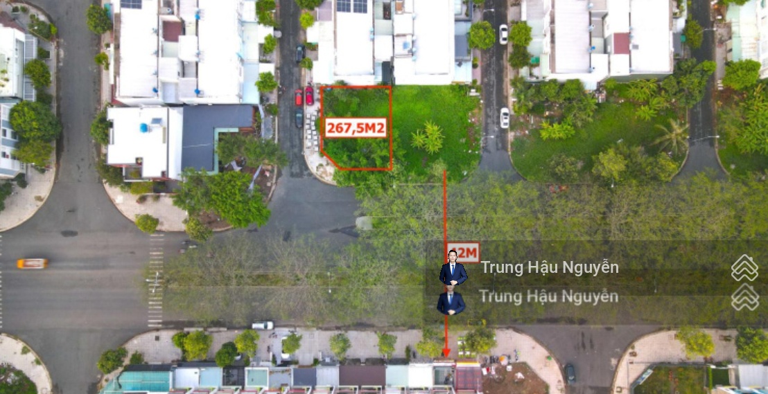 Diện tích 15.5m x 17.3m = 267.5m2.