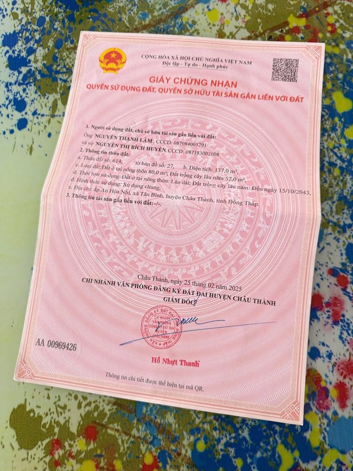Diện tích đất lên đến 137 m2, trong đó có 80 m2 thổ cư, sẵn sàng cho việc xây dựng hoặc đầu tư.