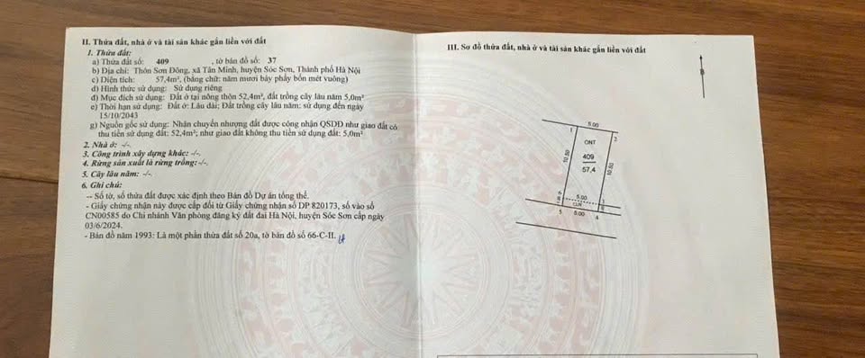 Cơ hội đầu tư "vàng" không thể bỏ lỡ tại Sóc Sơn, Hà Nội! Sở hữu ngay lô đất vuông vắn, nở hậu 5m với diện tích 57.4m², sẵn sàng cho mọi ý tưởng xây dựng của bạn.