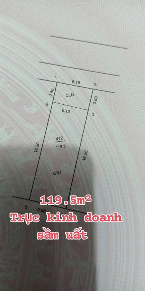 Diện tích lên đến 119.5m², trong đó có tới 98m² đất ONT (đất ở đô thị), chiếm gần 90% tổng diện tích, mang lại tiềm năng xây dựng và kinh doanh vượt trội. Tuyến đường Asphalt trước đất không chỉ rộng rãi mà còn kết nối thẳng đến trục kinh doanh sầm uất, nơi tập trung nhiều tiện ích như spa, siêu thị, văn phòng bất động sản và các công ty lớn nhỏ.