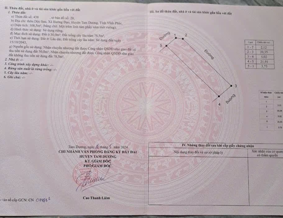 Chào mừng quý vị đến với miền đất hứa tại Thôn Dộc Sau, xã Hướng Đạo, huyện Tam Dương, tỉnh Vĩnh Phúc, nơi sở hữu một lô đất 3 mặt tiền vô cùng quý hiếm.