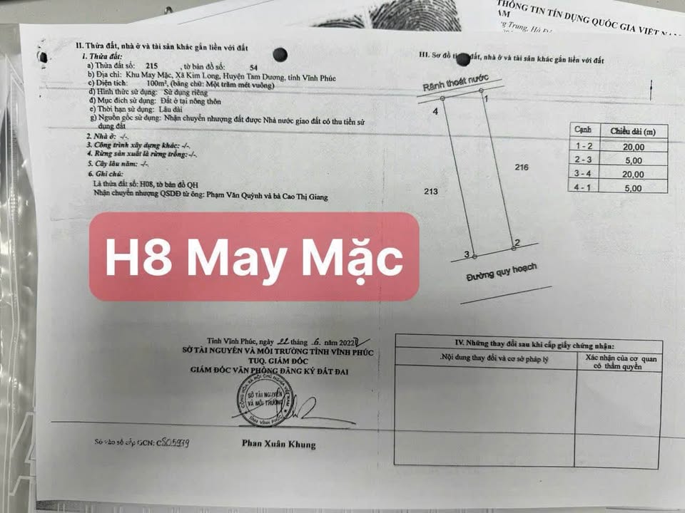 Đất thổ cư vuông vắn 99m2 tại Xóm Vải, Quất Lưu, gần thành phố Vĩnh Yên giá tốt