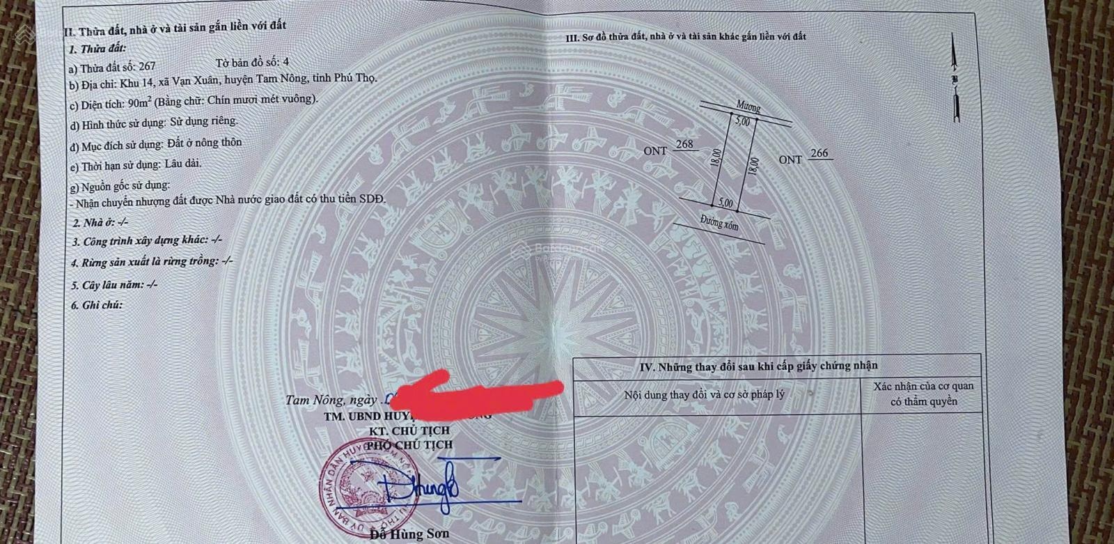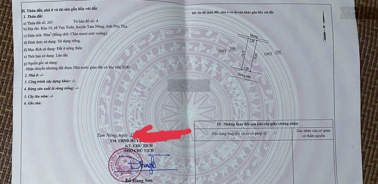 Đất nền tại Quốc lộ 32, Xã Vạn Xuân, Tam Nông, Phú Thọ với diện tích 90m2, pháp lý đầy đủ sổ đỏ/ sổ hồng.