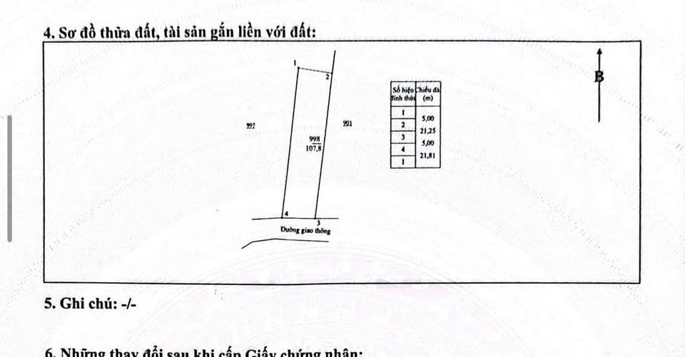 Với diện tích lên đến 107,8m², trong đó có 50m² thổ cư sẵn sàng để bạn xây tổ ấm, lô đất sở hữu mặt tiền rộng rãi 5m, lý tưởng cho mọi thiết kế.