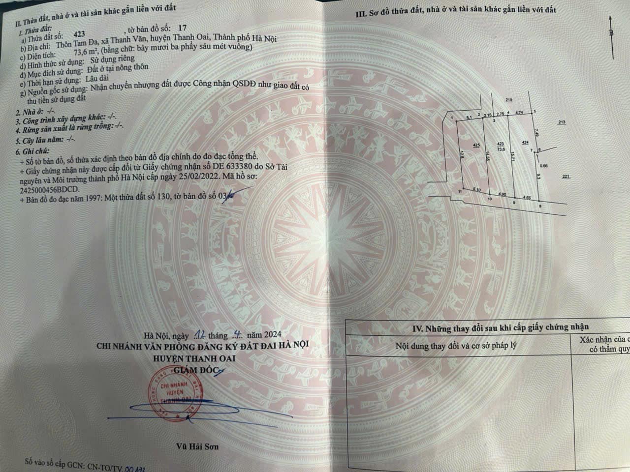 Chào mừng quý vị đến với mảnh đất mơ ước tại Tam Đa, xã Tam Hưng, thành phố Hà Nội. Nơi đây không chỉ sở hữu vị trí đắc địa, ngay trục liên xã Thanh Văn, mà còn mang đến sự thuận tiện tối đa với đường ô tô vào tận đất. Với diện tích 73.6m2 và mặt tiền rộng rãi 4.9m, mảnh đất này sở hữu dáng vẻ vuông vắn, cực kỳ đẹp mắt, sẵn sàng chờ đón chủ nhân tương lai kiến tạo nên tổ ấm hoặc cơ hội đầu tư sinh lời. Địa chỉ cụ thể tại Tam Đa, xã Tam Hưng, huyện Thanh Oai, thành phố Hà Nội, mảnh đất này hứa hẹn mang đến một cuộc sống tiện nghi và an lành. Vị trí ngay trục liên xã Thanh Văn giúp việc di chuyển và kết nối giao thông trở nên vô cùng dễ dàng. Đặc biệt, khả năng ô tô vào tận đất là một điểm cộng lớn, mang lại sự thuận tiện trong sinh hoạt hàng ngày cũng như tiềm năng kinh doanh. Mảnh đất có diện tích 73.6m2, với mặt tiền 4.9m, tạo nên một không gian lý tưởng để xây dựng ngôi nhà mơ ước hoặc phát triển các loại hình kinh doanh. Hướng của mảnh đất là hướng Đông, mang lại vượng khí và sự may mắn cho gia chủ. Mức giá hấp dẫn, nhỉnh hơn 5 tỷ đồng, là một cơ hội đầu tư không thể bỏ lỡ tại khu vực đang phát triển mạnh mẽ này. Để biết thêm chi tiết và sắp xếp lịch xem đất, vui lòng liên hệ Em Vinh qua số điện thoại 0961251290.