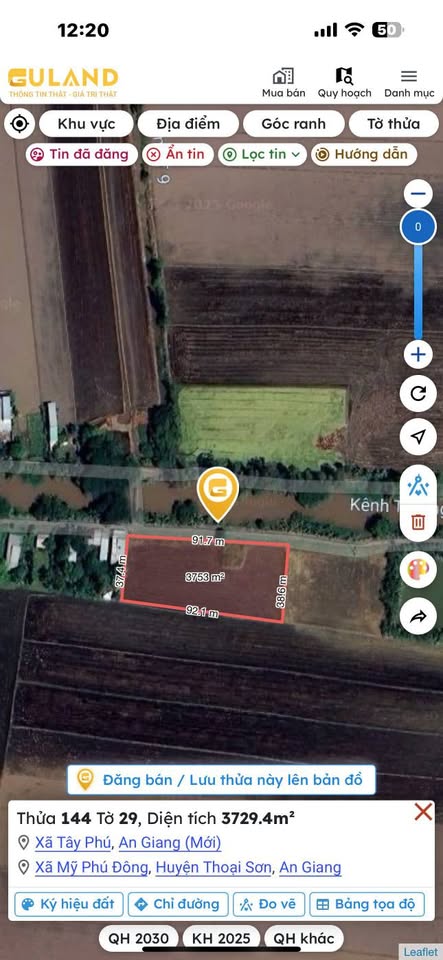 Bán 1200m2 đất mặt tiền đường nhựa kênh Trường Tiền, xã Mỹ Phú Đông, huyện Thoại Sơn, tỉnh An Giang.