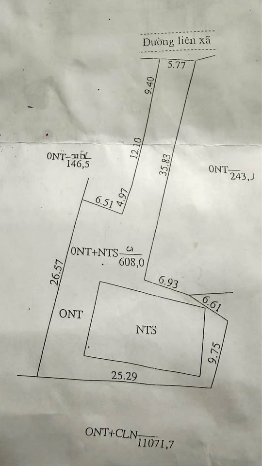 Diện tích thực tế lên đến 608m², với mặt tiền rộng 5.77m và bề thế nở hậu lên đến 22.29m, tạo nên thế đất cực kỳ vượng khí và tiềm năng.