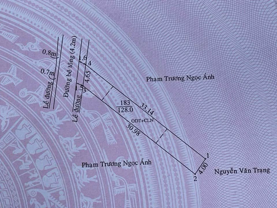 Diện tích đất 4m x 32m (128m2), trong đó có 60m2 thổ cư, hướng Tây Bắc.