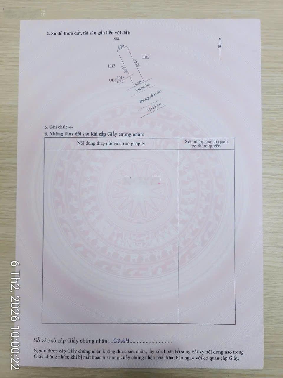 Bán gấp lô đất sổ hồng riêng, diện tích ngang 4m, dài 15.5m, tổng cộng 63.7m2