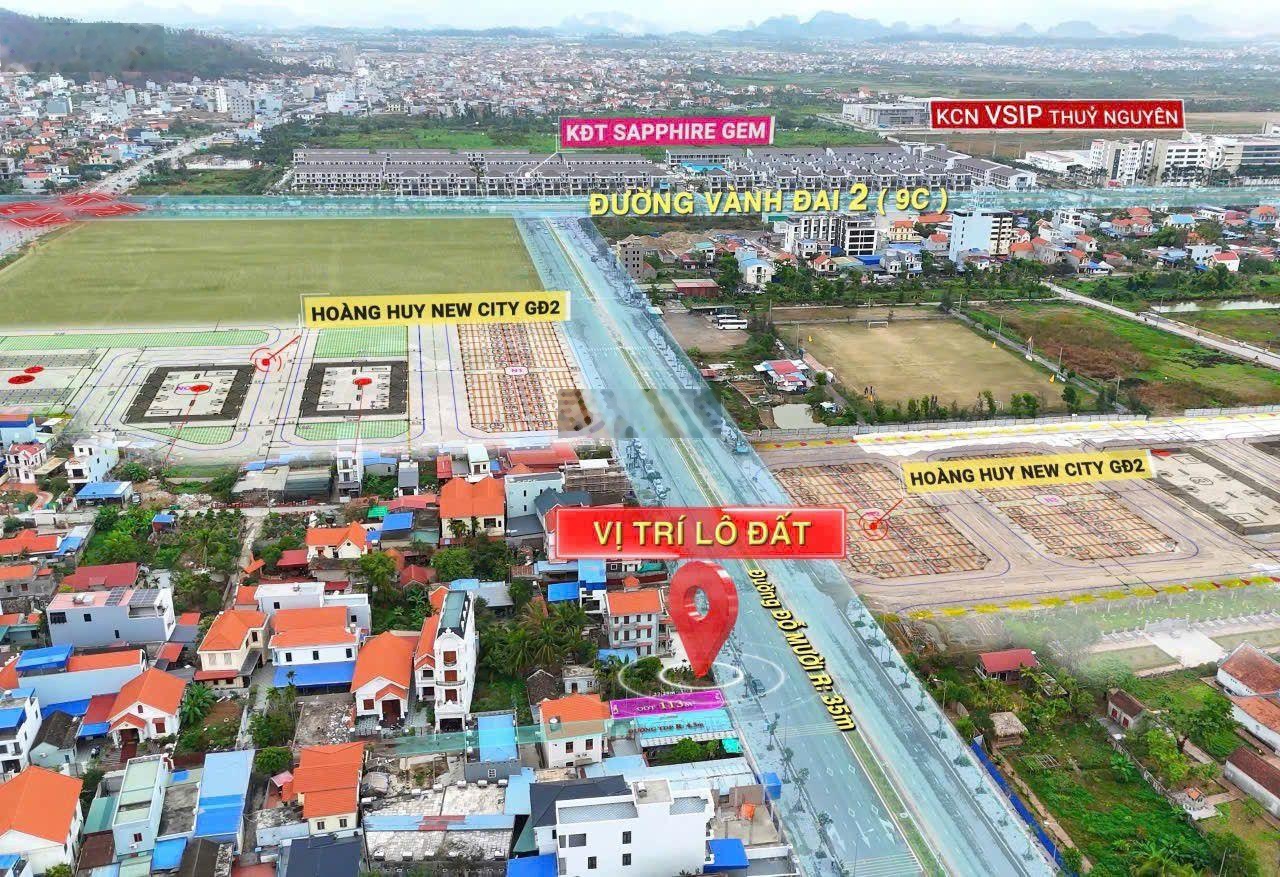 Lô đất nằm vị trí đắc địa. Trục đường chính của thành phố Thủy Nguyên - Hải Phòng. Nằm đối diện với dự án Hoàng Huy New City. Trục đường được coi là sầm uất và đẹp nhất sau này ạ.