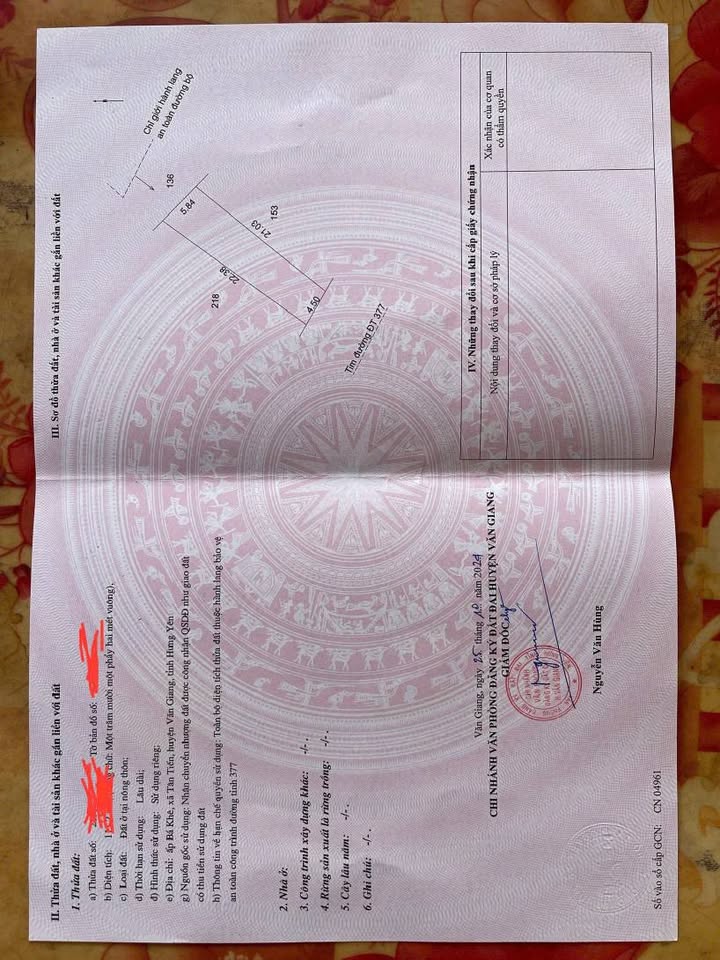 Chính chủ gửi bán lô đất cực phẩm, diện tích 111,2m2 với dáng nở hậu cực đẹp, tọa lạc ngay trên trục chính tỉnh 377, thuộc địa phận xã Văn Giang, huyện Văn Giang, tỉnh Hưng Yên (trước đây là ấp Bá Khê - Tân Tiến cũ).