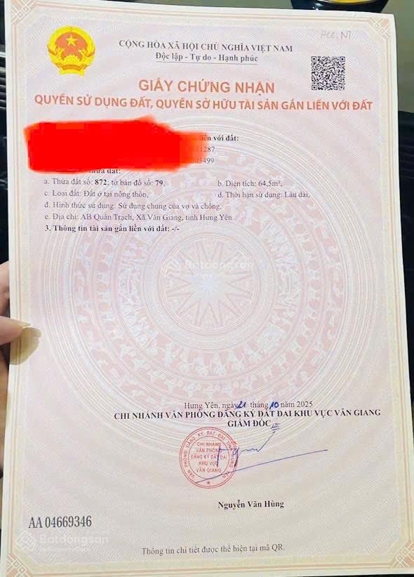 Siêu phẩm lô góc 76m2 full thổ cư tại Bá Khê, Tân Tiến, Văn Giang, Hưng Yên đang chờ chủ nhân mới