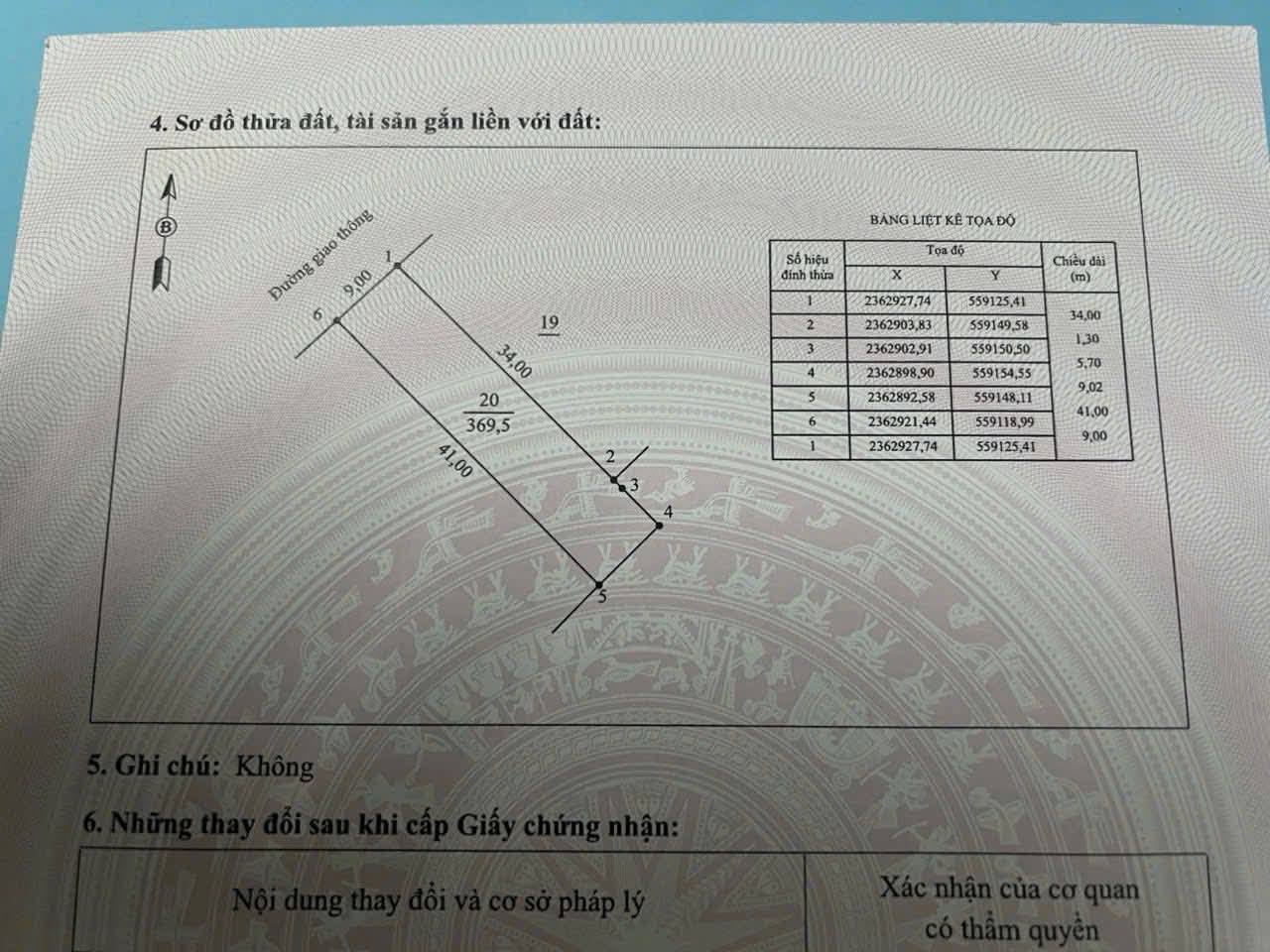 Diện tích siêu rộng 369.5m2, trong đó có tới 300m2 là đất thổ cư, còn lại là đất trồng cây lâu năm (CLN).