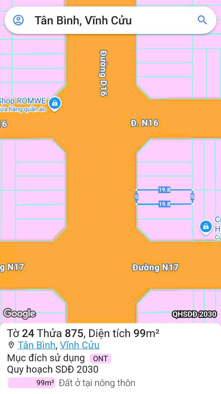 - Lô E3, mặt tiền đường lớn, diện tích 99m2, giá bán 1.85 tỷ.