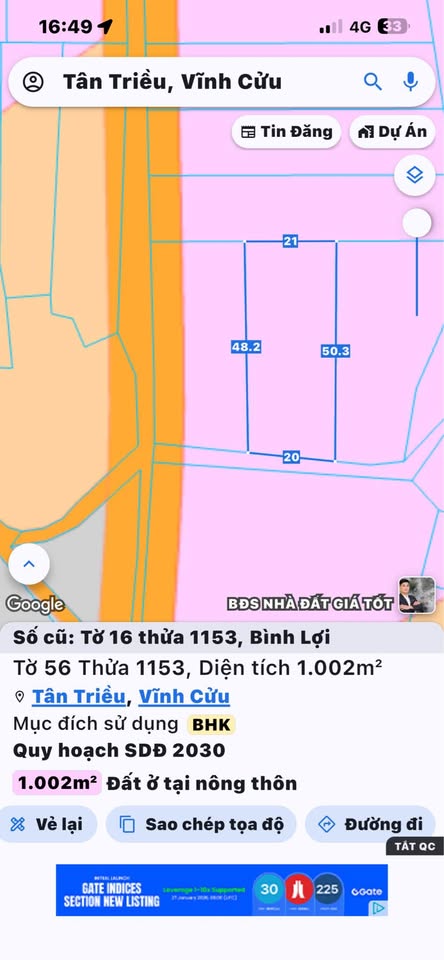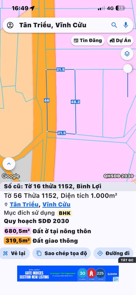 Tọa lạc tại phường Tân Triều (trước là xã Bình Lợi), huyện Vĩnh Cửu, tỉnh Đồng Nai, một lô đất góc hai mặt tiền rộng lớn đang chờ chủ nhân mới.