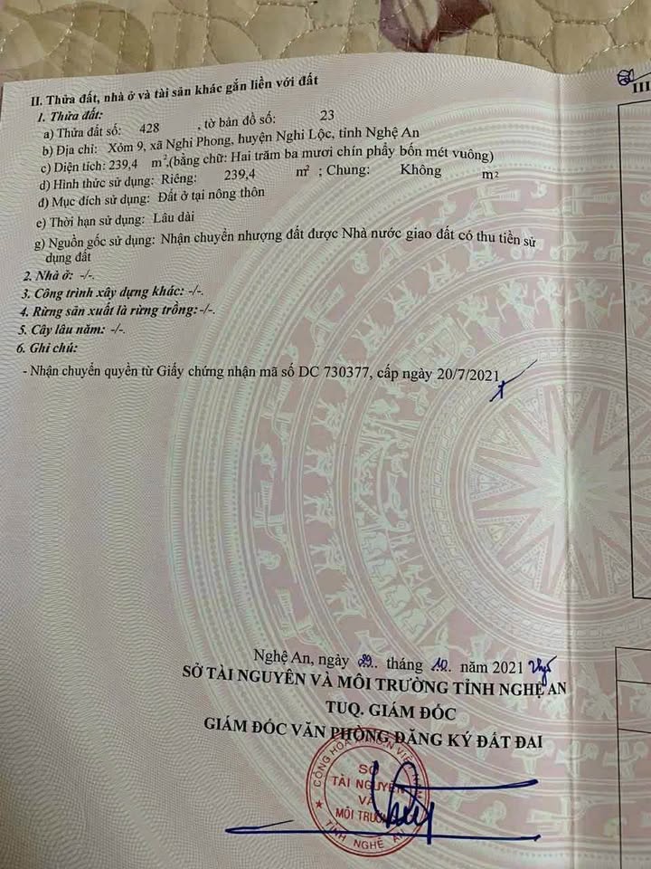 Cơ hội sở hữu ngay lô đất đấu giá "vàng" tại xóm 9, Nghi Phong, Thành phố Vinh, Tỉnh Nghệ An! Với diện tích rộng rãi 239m2, đây là mảnh đất lý tưởng để hiện thực hóa giấc mơ về một căn biệt thự tráng lệ, đẳng cấp.
