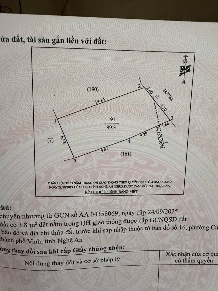 Chính chủ gửi gắm lô đất tiềm năng tại phường Thành Vinh, Thành phố Vinh, Nghệ An.