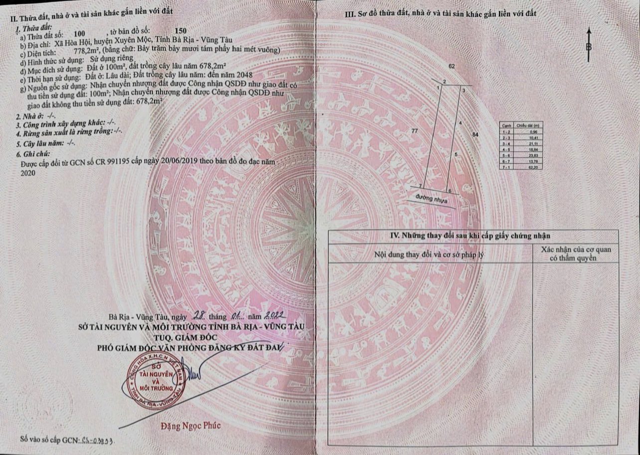 Bán đất vàng trung tâm Xuyên Mộc 82m2 full thổ cư, giá hờn 1,5 tỷ
