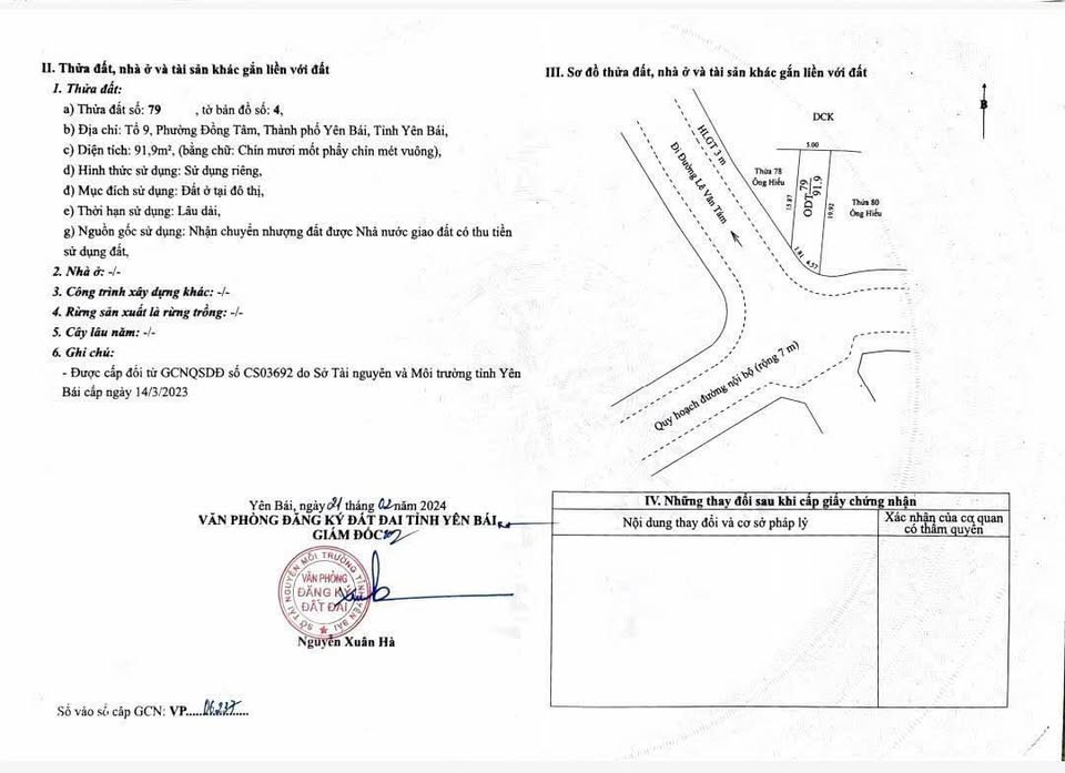 Bán đất 96.3m2 ODT, mặt tiền 6m, đường 9m, trung tâm Yên Bái