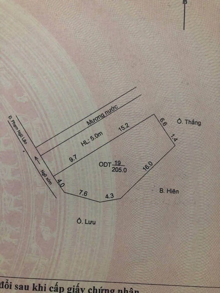 Diện tích tổng lên đến 563m2, trong đó có 205m2 đất thổ cư đẹp, vuông vắn, sẵn sàng xây dựng.