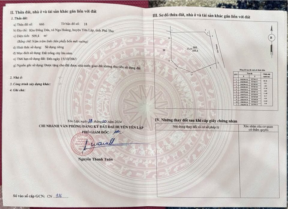 Siêu phẩm đất nền rộng tới 4000m2 tại Nga Hoàng, Yên Lập, Phú Thọ đang chờ chủ nhân mới! Cơ hội vàng để biến ước mơ về khu nghỉ dưỡng, trang trại hay homestay độc đáo thành hiện thực. Với 400m2 đất thổ cư đã tách sổ riêng, bạn hoàn toàn có thể tự tin xây dựng và phát triển. Vị trí đắc địa khi bám mặt đường bê tông rộng 4m, thông thoáng, giao thông cực kỳ thuận tiện, dân cư đông đúc, đường sá thông suốt, ngõ xóm thoáng đãng. Đây là cơ hội hiếm có, chủ nhà cần bán gấp nên giá cực kỳ hấp dẫn, chỉ nhỉnh 2 tỷ đồng. Đừng bỏ lỡ cơ hội sở hữu mảnh đất tuyệt vời này, liên hệ ngay để không bỏ lỡ nhé!