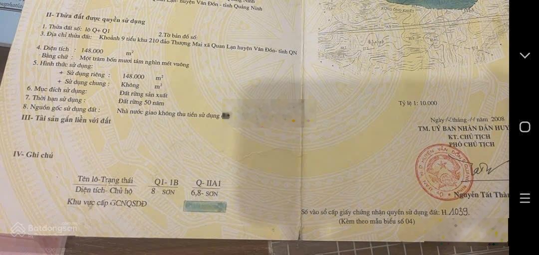 Bán cả Đảo Thượng Mai - Vân đồn .Vị trí này khu du lịch vân đồn từ bến tàu đi xuống máy ra đảo hết 20 phút.Bãi tăm dài 270m trên đảo có ba giếng nước ngọt. Đất 50 năm cấp 2008 còn 33 năm chú chuyển nhượng 15,99 tỷ có thỏa thuận mạnh cho người thiện chí.