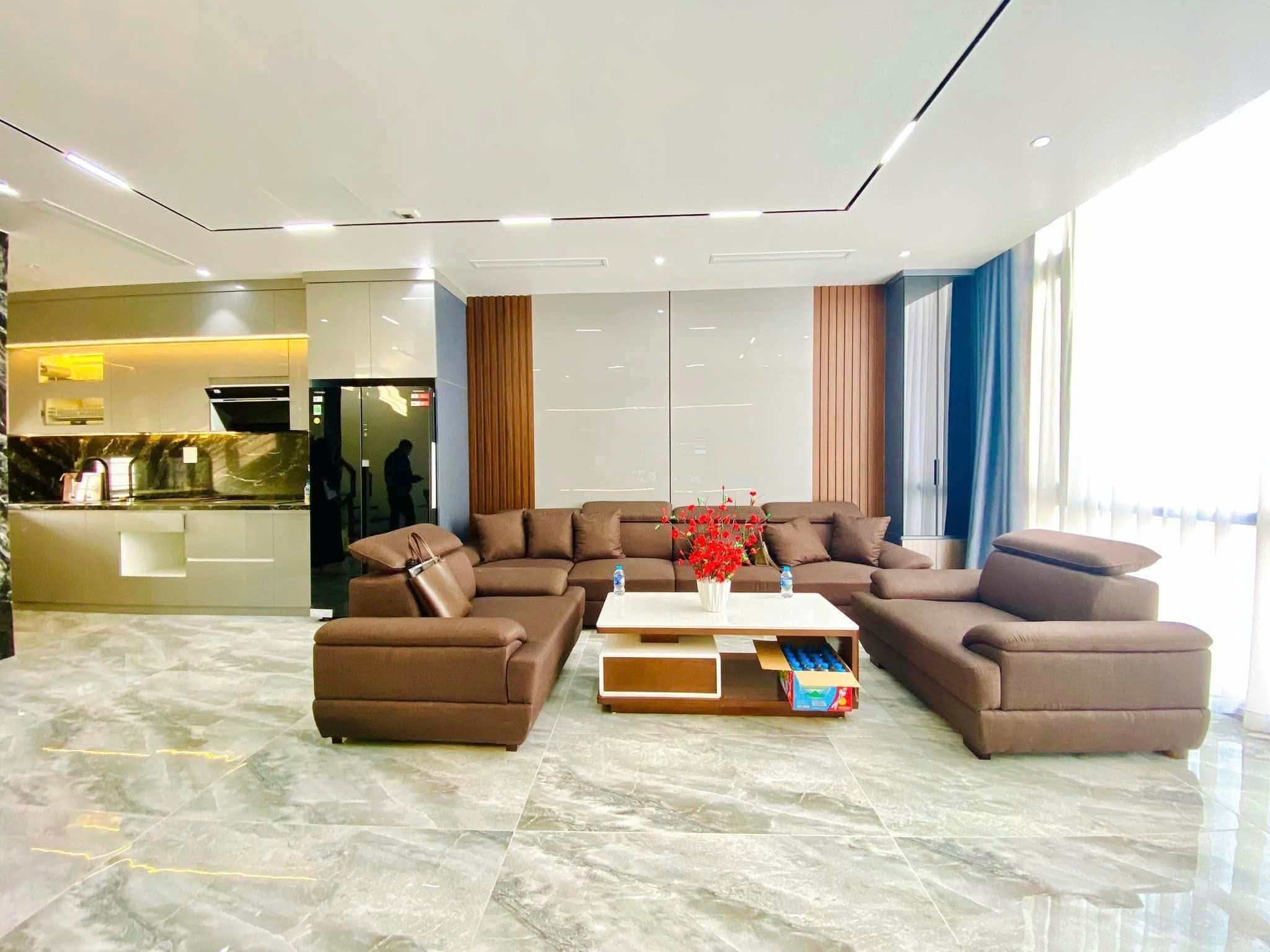 Thiết kế bao gồm tầng 1 là gara và không gian kinh doanh, cùng với 6 phòng ngủ. Nội thất được trang bị đầy đủ, bao gồm tủ bếp, bếp từ, điều hòa, và hệ thống nóng lạnh, sẵn sàng để ở ngay.