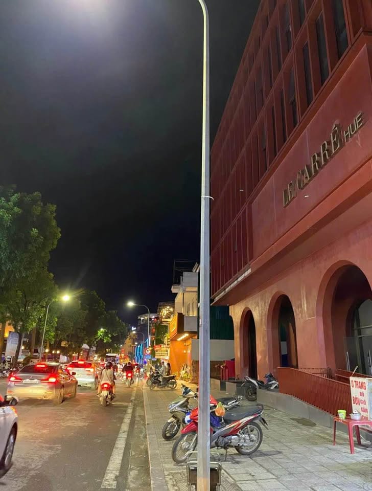 Bán tòa nhà 05 tầng có vị trí kinh doanh đắc địa trên mặt tiền đường Lê Lợi, thành phố Huế. Bất động sản sở hữu diện tích 140m2 với mặt tiền nở hậu rộng 8,25m, tạo lợi thế lớn cho việc kinh doanh.